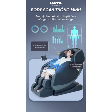 Ghế massage KATA MC04 là dòng ghế massage toàn thân công nghệ cao được KATA Technology nghiên cứu và phát triển hướng đến chăm sóc sức khỏe liên tục ngay tại nhà. Sản phẩm này được trang bị hệ thống massage tiên tiến, hỗ trợ giảm căng thẳng cơ bắp, đau nhức lưng, cổ và vai sau một ngày làm việc dài.