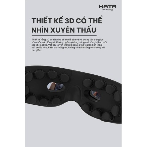 - Giảm mờ mắt và khô mắt: KATA ME80 hỗ trợ massage vùng quanh mắt bằng rung và chườm nóng, giúp thư giãn cơ mắt và cải thiện cảm giác khô, cộm sau thời gian dài làm việc. Từ đó, mắt dễ chịu hơn và phục hồi nhanh hơn giữa các khoảng nghỉ.