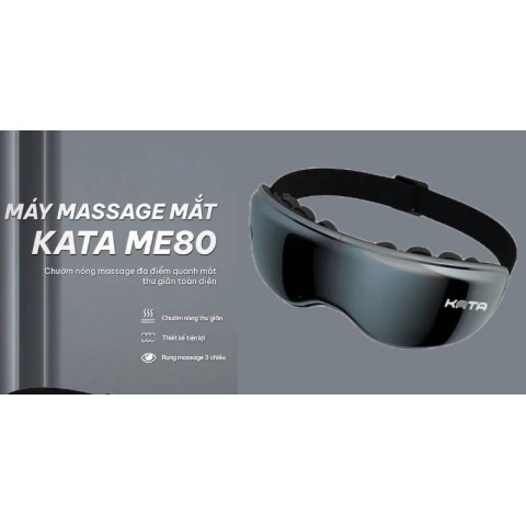 Máy massage mắt KATA ME80 là máy massage mắt đeo kính vùng mắt, sử dụng 16 đầu rung độc lập và công nghệ chườm nóng tăng dần để mô phỏng xoa bóp thủ công tại huyệt vị quanh mắt (lông mày, mí mắt, thái dương). Sản phẩm được thiết kế như kính đeo, tích hợp loa phát nhạc thư giãn và hệ thống nút bấm đơn giản.